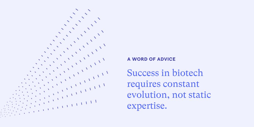 Ahh, I am tempted to say, “if you are young and entering biotech, you may want to steer away from advice from a grey-haired exec who has been around for 30 years”. Times have changed! I would encourage gaining an intimate understanding of what biotech needs right now and honing your skill sets accordingly. At the same time, recognize those needs will change over your career and you will need to adapt to the changing environment. Rather than focusing on being the best in a single narrow discipline because you love it so much, it is important to stay flexible, as areas of focus can become obsolete in the blink of an eye.